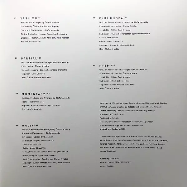 Engineer Addi 800, Jake Jackson, Ólafur Arnalds | Mixed By [Mix] Ólafur Arnalds | Orchestra [String Orchestra] The London Recording Orchestra | Piano, Electronics Ólafur Arnalds