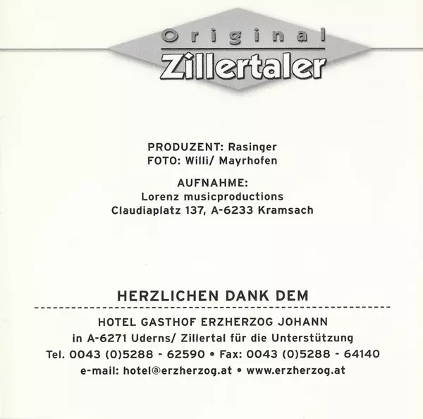 | Artist | Die Original Zillertaler |