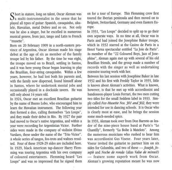 | Guitar Oscar Aleman | Lap Steel Guitar [Guitare Hawaienne] Gaston Bueno Lobo | Written-By Gaston Bueno Lobo, Oscar Aleman | |||