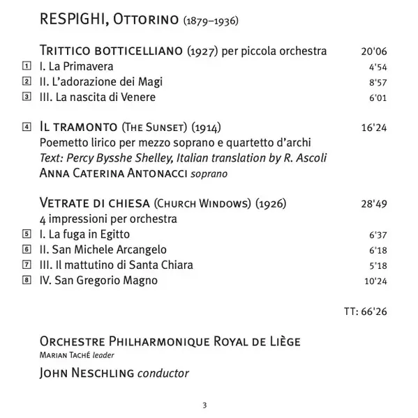 Artist | Ottorino Respighi | Orchestre Philharmonique De Liège | John Neschling | Anna Caterina Antonacci |
