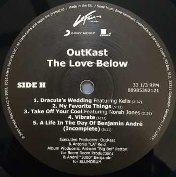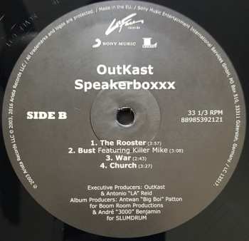 Konečně: páté mistrovské dílo Outkast Speakerboxxx / The Love Below je k dispozici v edici 4 vinylů, přičemž Big Boi "sestavil" LP 1 a 2 a Dré "sestavil" LP 3 a 4. Compiled v tomto případě znamená, že skladby produkoval nebo spoluprodukoval Dré nebo Big Boi a výběr hostů na nich byl rovněž určen jimi. Na LP s Big Boiem tedy můžete očekávat hiphopovou stránku Outkastu s hosty, jako je Jay Z, a na ostatních LP zažijete "bláznivé" funk-a-delic vibrace, které byly vždy podstatnou součástí stylu Outkastu.