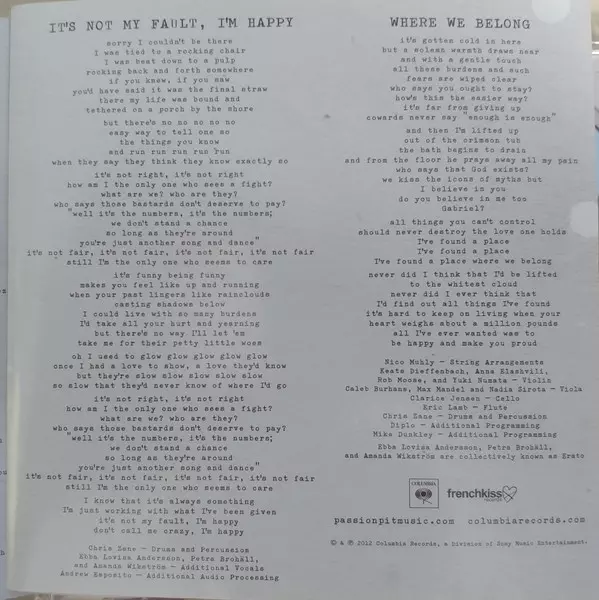 Passion Pit: Gossamer version on CD in Standard edition. This particular edition was published in Europe and UK in publishing company Columbia in cooperation with Frenchkiss Records on 24. July 2012. Album spans genres Rock, Pop, Electronic, Indie Rock and Synth-pop.