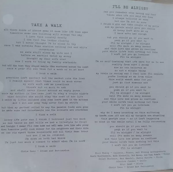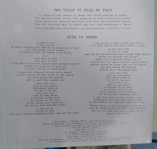 Baritone Saxophone, Tenor Saxophone Jon Natchez | Celesta [Celeste], Piano, Arranged By [String Arrangements] Nico Muhly | Cello Clarice Jensen | Drums, Percussion Chris Zane | Flute Eric Lamb | Percussion [Aux Percussion], Programmed By [Additional Programming] Andrew Esposito | Trumpet, Trombone Kelly Pratt | Viola Caleb Burhans, Max Mandel, Nadia Sirota | Violin Anna Elashvili, Keats Dieffenbach, Rob Moose, Yuki Numata | Vocals [Additional Vocals] Amanda Wikström, Ebba Lovisa Andersson, Petra Brohäll