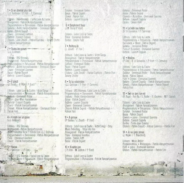 Backing Vocals Patrick Dupont | Drums, Backing Vocals Patrick Hampartzoumian | Flute, Organ, Keyboards Manu Guerrero | Lyrics By Bernard Di Domenico | Lyrics By, Music By Patrick Fiori | Music By Patrice Carmona