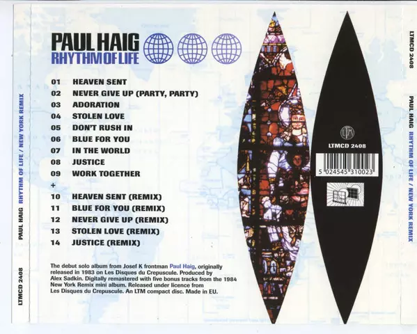 Paul Haig: Rhythm Of Life / New York Remix version on CD in Standard edition. This particular edition was published in United Kingdom in publishing company LTM (4) on 28. October 2004. Album spans genres Pop, Electronic, Electro and Synth-pop.