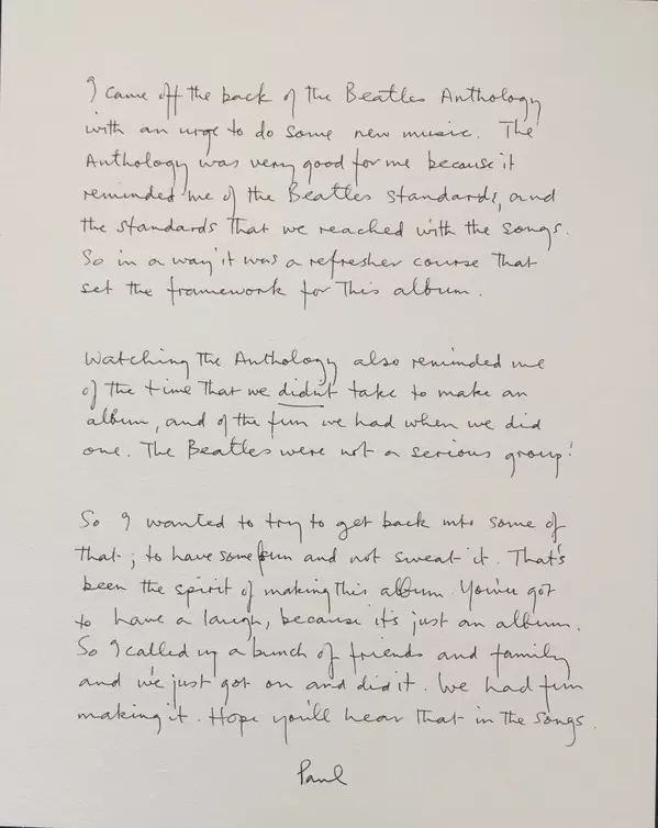 Backing Vocals James McCartney | Backing Vocals, Drums, Guitar, Bass, Piano, Percussion, Harpsichord, Vibraphone Paul McCartney | Backing Vocals, Guitar Jeff Lynne | Horns John Pigneguy, Michael Thompson (2), Richard Bissill, Richard Watkins