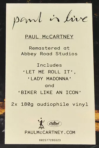Recorded during the U.S. and Australian swings of the tour in support of 1993's Off The Ground, Paul Is Live is Paul's fifth live album. Originally released that same year, the album is famous for the multiple meanings and clues embedded in its title and cover art, all of which play on the „Paul Is Dead” conspiracy/hoax. In addition to a wealth ...