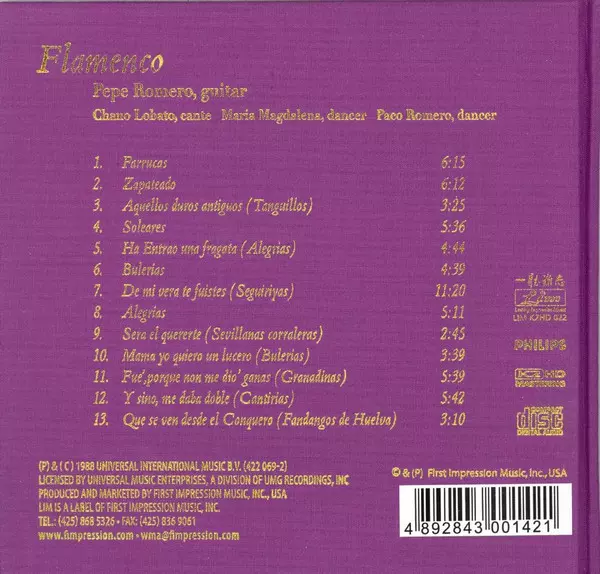 | Artist | Pepe Romero | Chano Lobato | Maria Magdalena | Paco Romero |