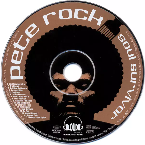 Pete Rock: Soul Survivor version on CD in Standard edition. This particular edition was published in Europe in publishing company Loud Records in cooperation with Epic and Steven Rifkind Company year 2000. Album spans genres Hip Hop, Jazz Rap and Boom Bap.