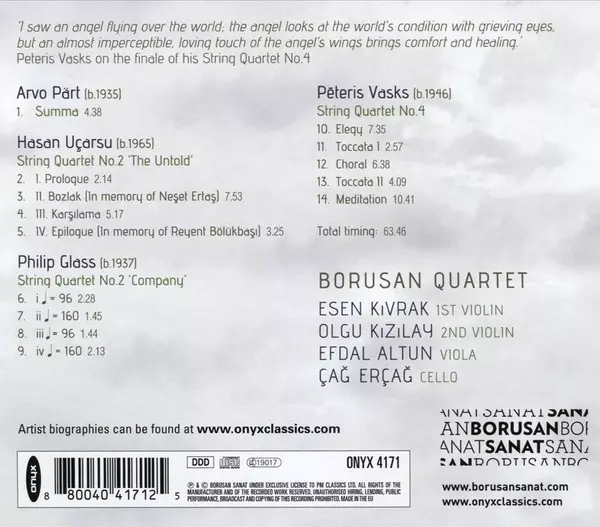 | Artist | Philip Glass | Arvo Pärt | Pēteris Vasks | Borusan Quartet | Hasan Uçarsu |