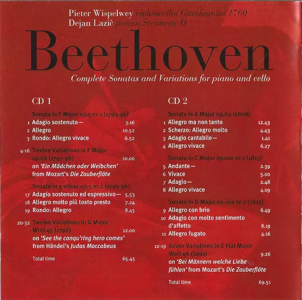 | Artist | Ludwig van Beethoven | Pieter Wispelwey | Dejan Lazić |