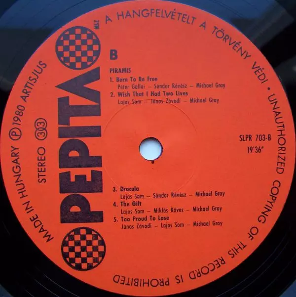 Piramis: Piramis version on vinyl LP in Standard edition. This particular edition was published in Hungary in publishing company Pepita year 1980. Album spans genres Rock and Hard Rock. Laminated Sleeve Orange Labels Vinyl.