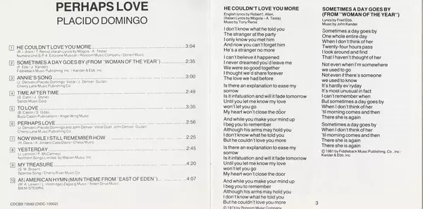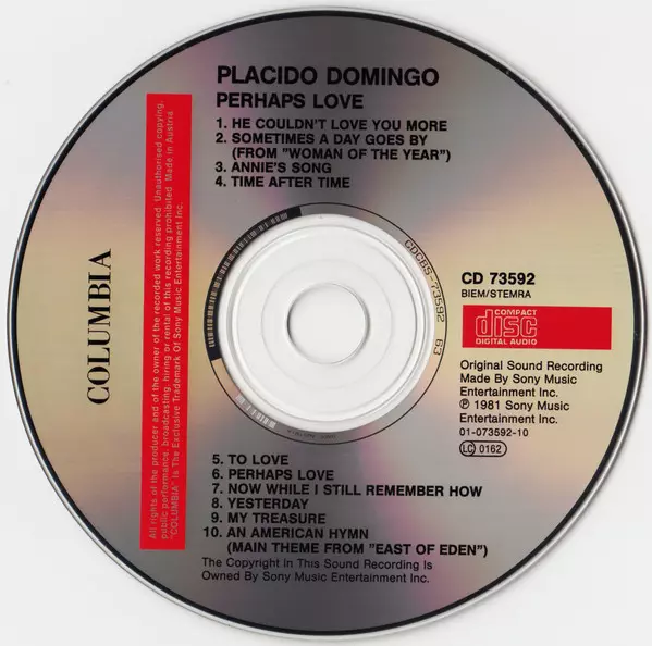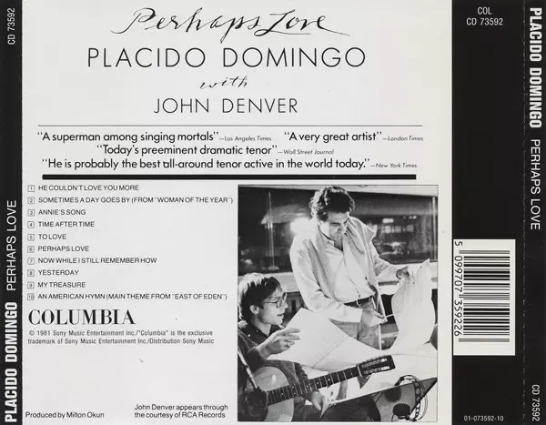 Placido Domingo The album "Perhaps Love," released in 1981, is a compilation of romantic ballads by the popular opera singer. The album includes classic love songs such as "The Way You Look Tonight" and "Unforgettable" and has been praised by music critics for its beautiful and emotional performances.