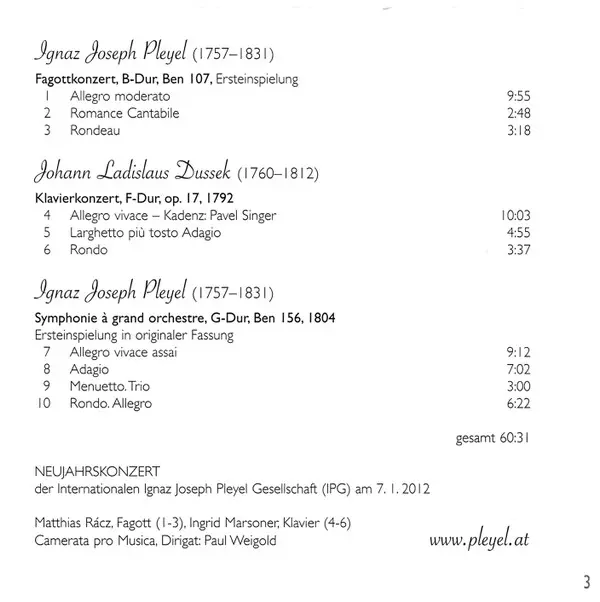 Ignaz Pleyel: Fagottkonzert, B-Dur, Ben 107, Ersteinspielung | ||