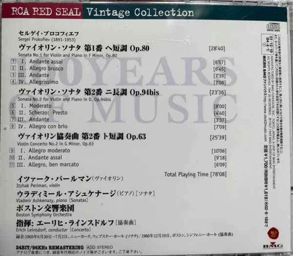| Artist | Itzhak Perlman | Sergei Prokofiev | Boston Symphony Orchestra | Vladimir Ashkenazy | Erich Leinsdorf |