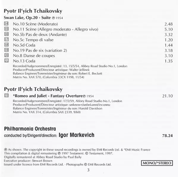 | Artist | Pyotr Ilyich Tchaikovsky | Philharmonia Orchestra | Sergei Prokofiev | Igor Markevitch |