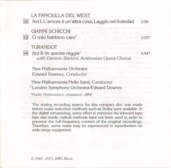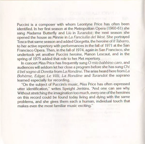 | Artist | Giacomo Puccini | New Philharmonia Orchestra | Leontyne Price | Edward Downes |