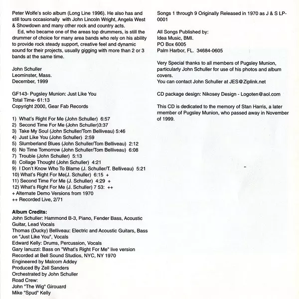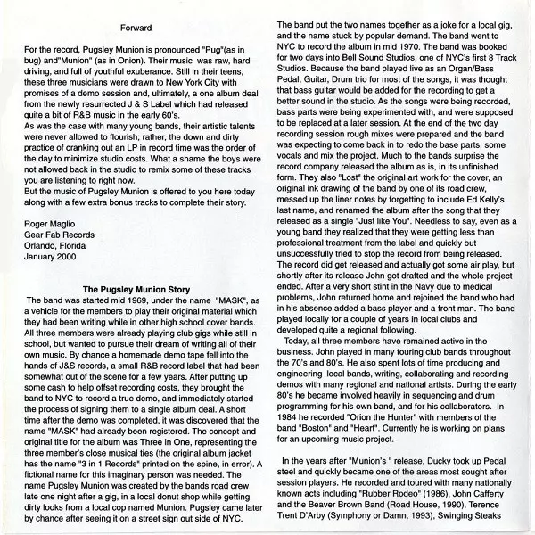 Pugsley Munion: Just Like You version on CD in Remastered edition. This particular edition was published in USA in publishing company Gear Fab Records on 17. February 2000. Album spans genres Rock, Hard Rock, Psychedelic rock and Blues Rock.