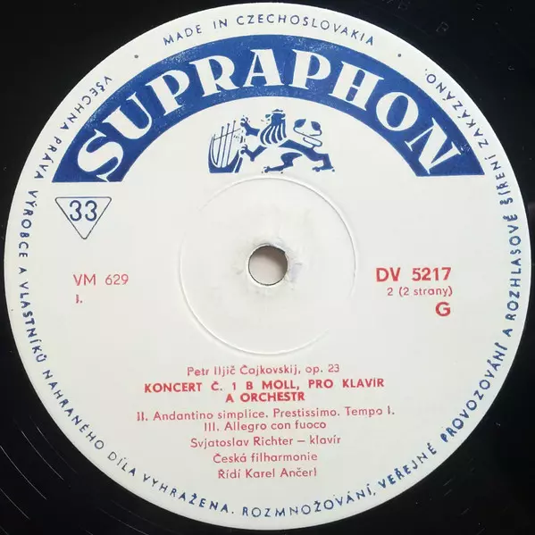 | Artist | The Czech Philharmonic Orchestra | Pyotr Ilyich Tchaikovsky | Sviatoslav Richter | Karel Ančerl |