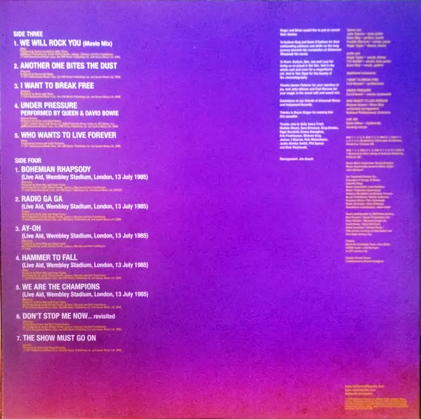 | Producer Queen | Producer [Additional] Joshua J. Macrae, Justin Shirley-Smith, Kris Fredriksson | Producer [Assistant] Mike Stone | Written-By Brian May | |||