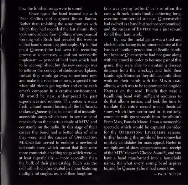 Empire vyšlo 20. srpna 1990 a je dosud komerčně nejúspěšnějším albem skupiny, které dosáhlo trojnásobné platiny. Obsahovalo hit "Silent Lucidity", který se dostal do Top 10 a byl nominován na dvě ceny Grammy, a skladbu "Jet City Woman". Následovníka přelomového alba Operation: Mindcrime produkoval Peter Collins a nahrávalo se ve Washingtonu a Va...