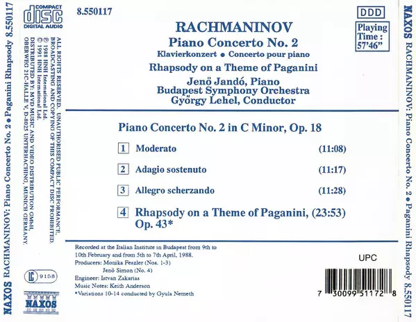 | Title | Piano Concerto No. 2 • Rhapsody On A Theme Of Paganini |