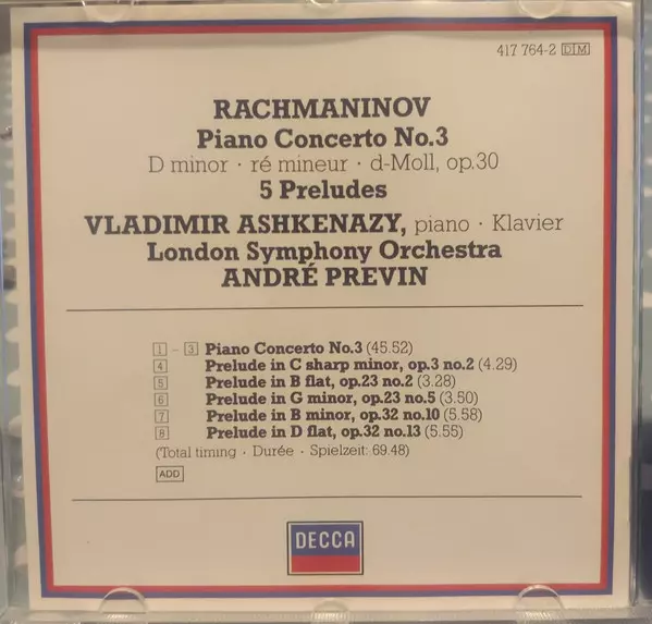 | Artist | The London Symphony Orchestra | André Previn | Vladimir Ashkenazy | Sergei Rachmaninoff |