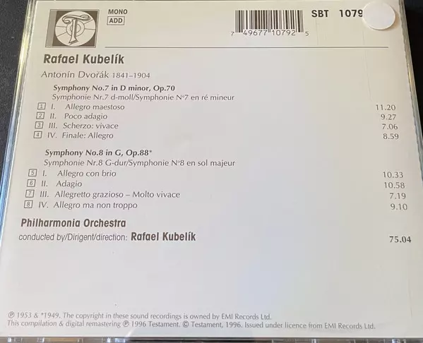 | Title | Dvorak: Symphonies N°7 & N°8 |
