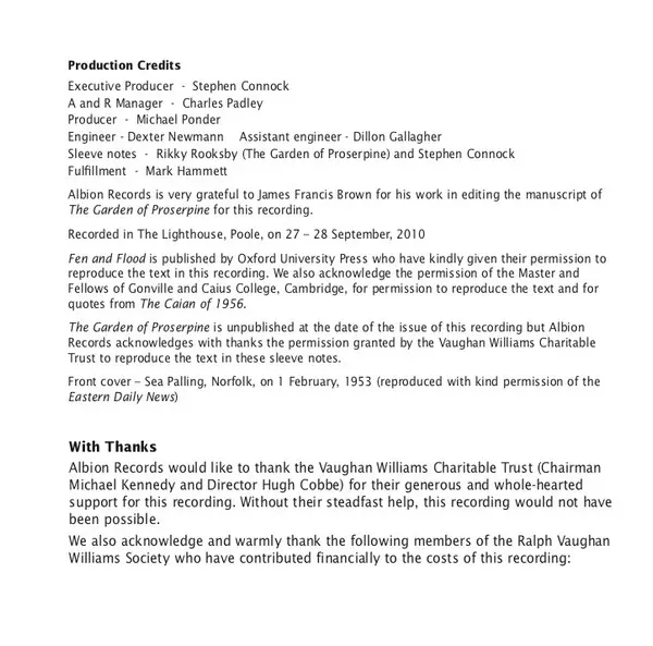 | Artist | Bournemouth Symphony Orchestra | Ralph Vaughan Williams | Paul Daniel | Mary Bevan | Patrick Hadley | The Joyful Company Of Singers | Jane Irwin | Leigh Melrose |
