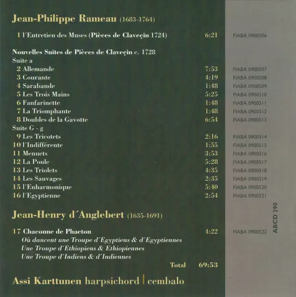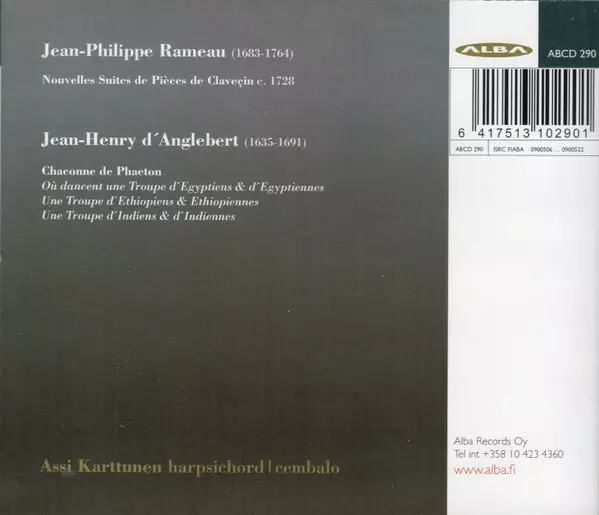| Artist | Jean-Philippe Rameau | Jean-Henry d'Anglebert | Assi Karttunen |