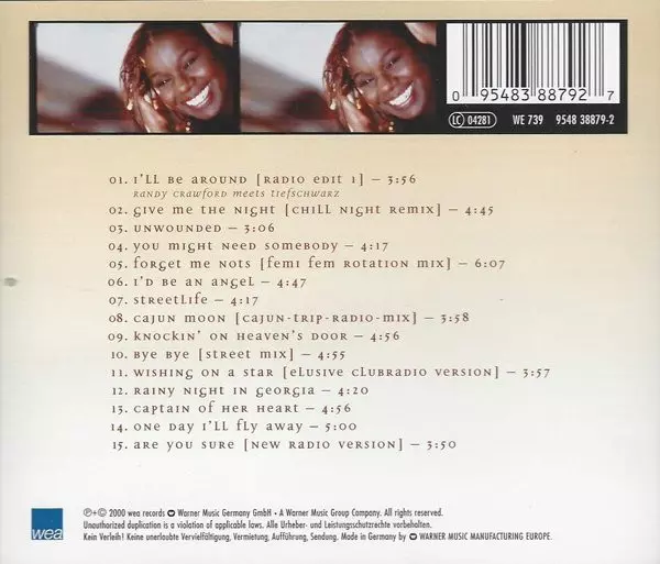 Randy Crawford: The Best Of Randy Crawford & Friends version on CD in Standard edition. This particular edition was published in Europe in publishing company WEA on 21. August 2014. Album spans genres Pop, Electronic, Funk / Soul, Vocal, Balad, Downtempo, Soul, Contemporary R&B, Trip Hop and Garage House.