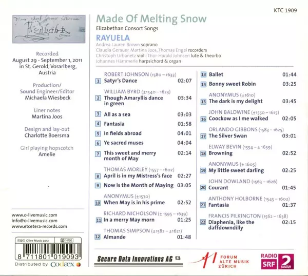 Title | Made Of Melting Snow - Elizabethian Consort Songs |