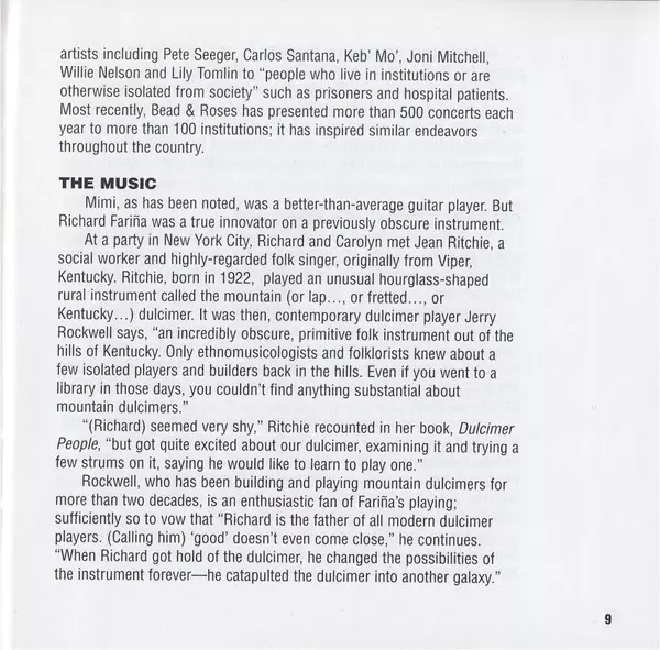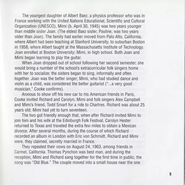 Vocals, Dulcimer Richard Farina | Vocals, Guitar Mimi Farina