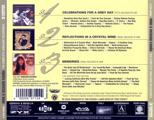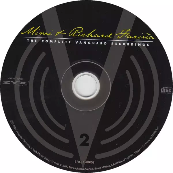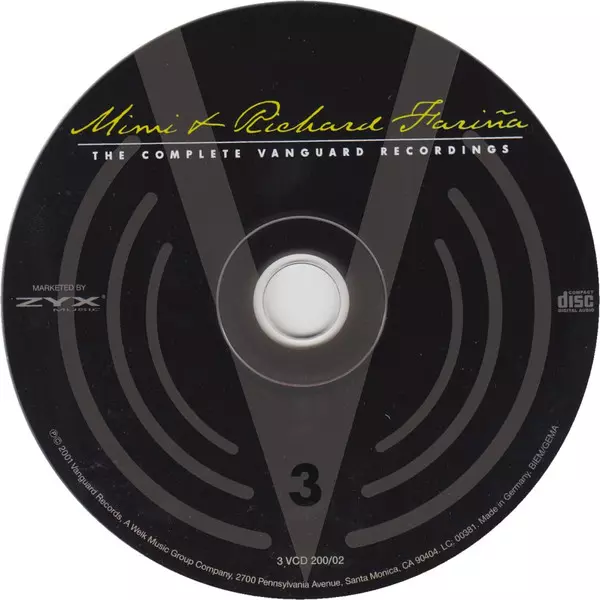 Richard & Mimi Farina: The Complete Vanguard Recordings version on 3CD in Remastered edition. This particular edition was published in Germany in publishing company Vanguard on 8. April 2004. Album can be classified in the genre Folk, World, & Country.