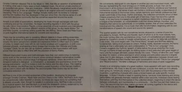 | Artist | Joe McPhee | Chris Corsano | Rodrigo Amado | Kent Kessler |