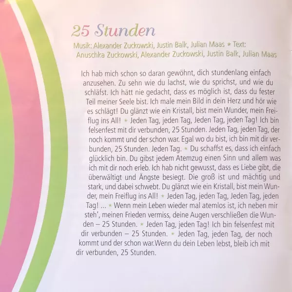 | Lyrics By Anuschka Zuckowski | Music By, Lyrics By Alexander Zuckowski, Julian Maas, Justin Balk | |||