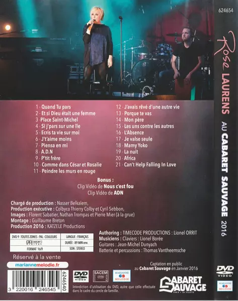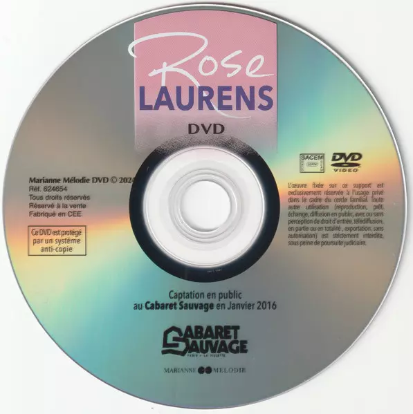 Rose Laurens: Rose Laurens Au Cabaret Sauvage 2016 version on DVD in Standard edition. This particular edition was published in France in publishing company Marianne Mélodie on 16. February 2024. Album can be classified in the genre Pop.