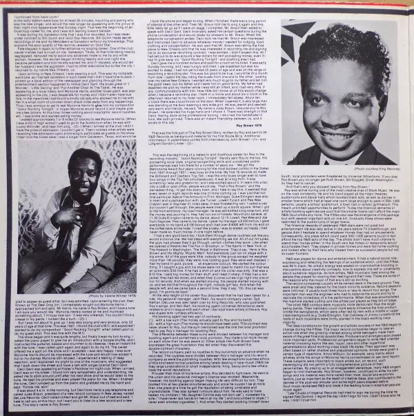 Backing Vocals [Male Vocal Group] Unknown Artist | Bass Edwyn Conley | Drums Edison Gore | Guitar Charles Grayson | Piano Jon Thomas (3) | Tenor Saxophone Osborne Whitfield, Ray Felder | Written-By Roy Brown