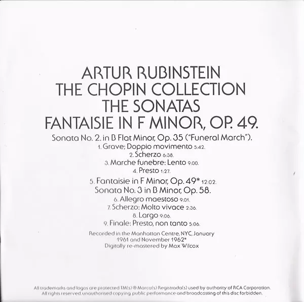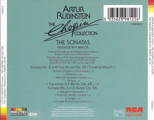 | Artist | Frédéric Chopin | Arthur Rubinstein |