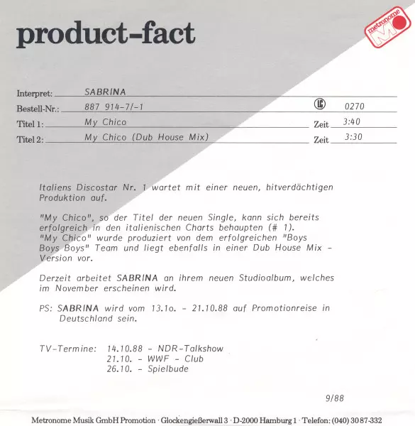 | Artist | Sabrina |