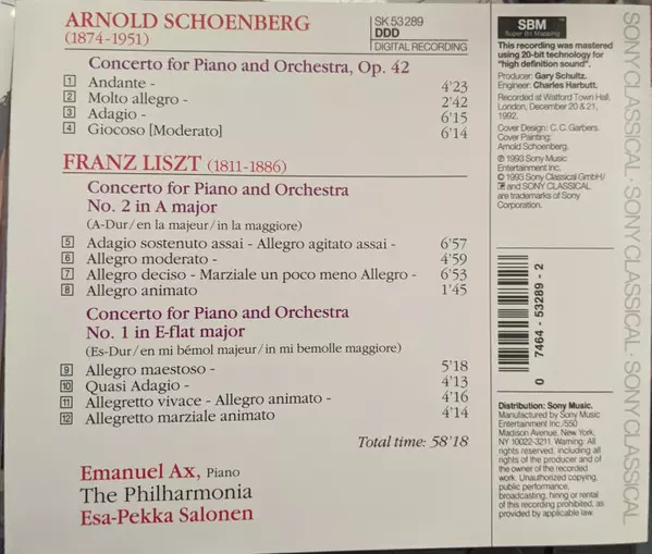 | Artist | Philharmonia Orchestra | Franz Liszt | Arnold Schoenberg | Esa-Pekka Salonen | Emanuel Ax |