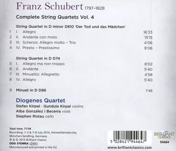 | Title | Complete String Quartets Vol. 4 (String Quartet D74 / String Quartet D810 'Der Tod Und Das Mädchen' / Minuet D86) |