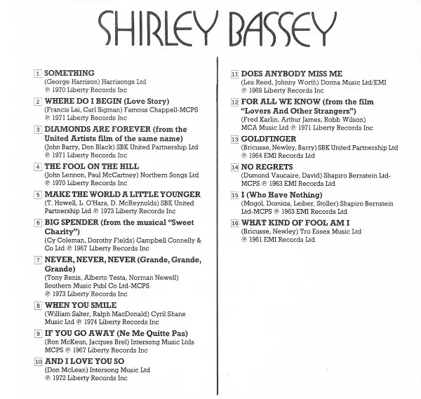 | Artist | Shirley Bassey |