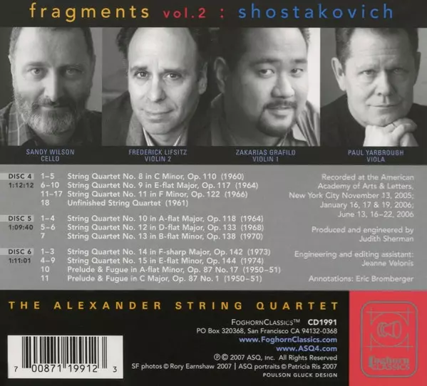 | Artist | Dmitri Shostakovich | Alexander String Quartet |