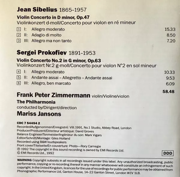 | Artist | Philharmonia Orchestra | Sergei Prokofiev | Jean Sibelius | Mariss Jansons | Frank Peter Zimmermann |
