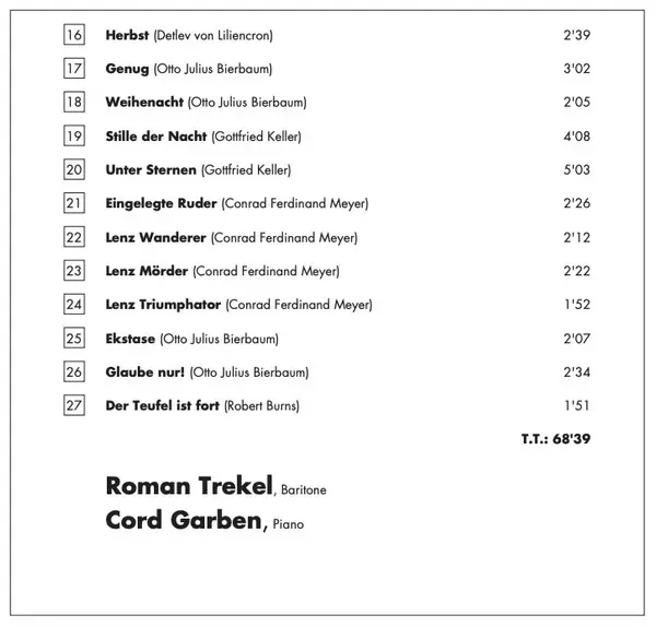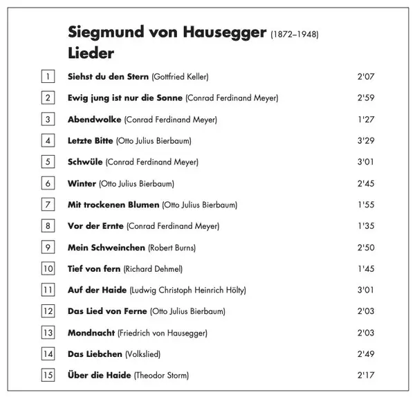 | Artist | Siegmund von Hausegger | Roman Trekel | Cord Garben |