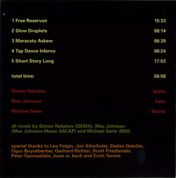 | Artist | Simon Nabatov | Michael Sarin | Max Johnson |
