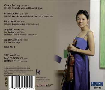 | Artist | Claude Debussy | Franz Schubert | Astor Piazzolla | Béla Bartók | Jörg Widmann | Sinn Yang |
