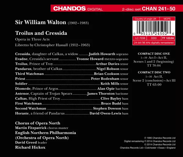 | Artist | Richard Hickox | Sir William Walton | Arthur Davies | Judith Howarth | Alan Opie | Yvonne Howard | Nigel Robson | Clive Bayley | Opera North |