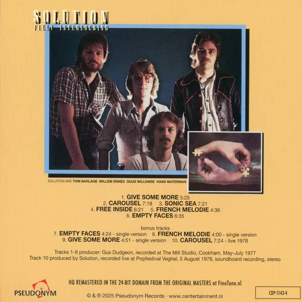Bass Guitar, Vocals Guus Willemse | Drums Hans Waterman | Guitar Harry Hardholt | Producer [Demo Recordings Produced By] Jim Capaldi, Solution (4) | Synthesizer Willem Ennes | Synthesizer, Percussion Tom Barlage | Vocals, Percussion Jim Capaldi | Written-By Guus Willemse, Hans Waterman, Harry Hardholt, Jim Capaldi, Tom Barlage, Willem Ennes | |||